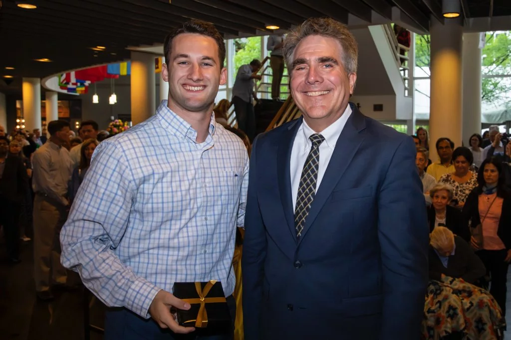 Award for Academic Excellence in the Owen Vanderbilt Master of Science in Finance. Dean Eric Johnson of the Vanderbilt Owen Graduate School presenting the award to Parker Henry for the top MSF student in 2019. Parker completed the internship in the summer of 2018.